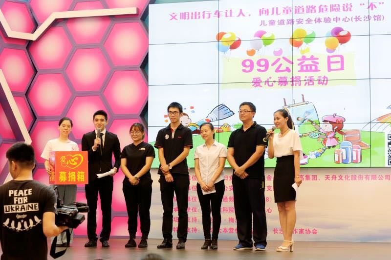 此次爱心捐赠活动分为两部分:一是线上众筹,7-9日三天通过腾讯公益官方平台进行募捐;二是线下活动,即“99公益日”当天的落地公益活动。此次落地活动,现场人气颇高,互动热烈,来自天舟文化心理中心的专业教师与长沙市交警支队的4名交警为孩子们带去交通安全主题的互动游戏与现场教学,儿童道路安全体验中心(长沙馆)还组织开展了交通知识竞答赛以及亲子安全闯关等多项交通安全体验活动。湖南交通频道(FM91.8)全程直播,多家媒体同步报道。湖南省妇女儿童发展基金会副理事长兼秘书长周萍参加活动并讲话。