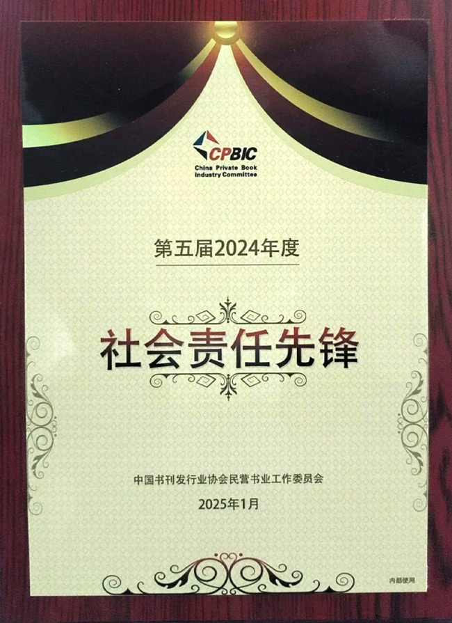 多年来,公司始终关注社会发展需要,积极履行社会责任。先后荣获“中国文化行业品牌价值100强”“全国文化企业30强提名企业”“改革开放40年民营书业四十强企业”等荣誉。