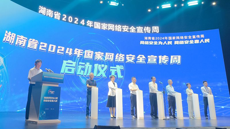 董事长肖志鸿作为企业家代表和省、市、区、园区领导上台启动2024年湖南省网络安全宣传周活动